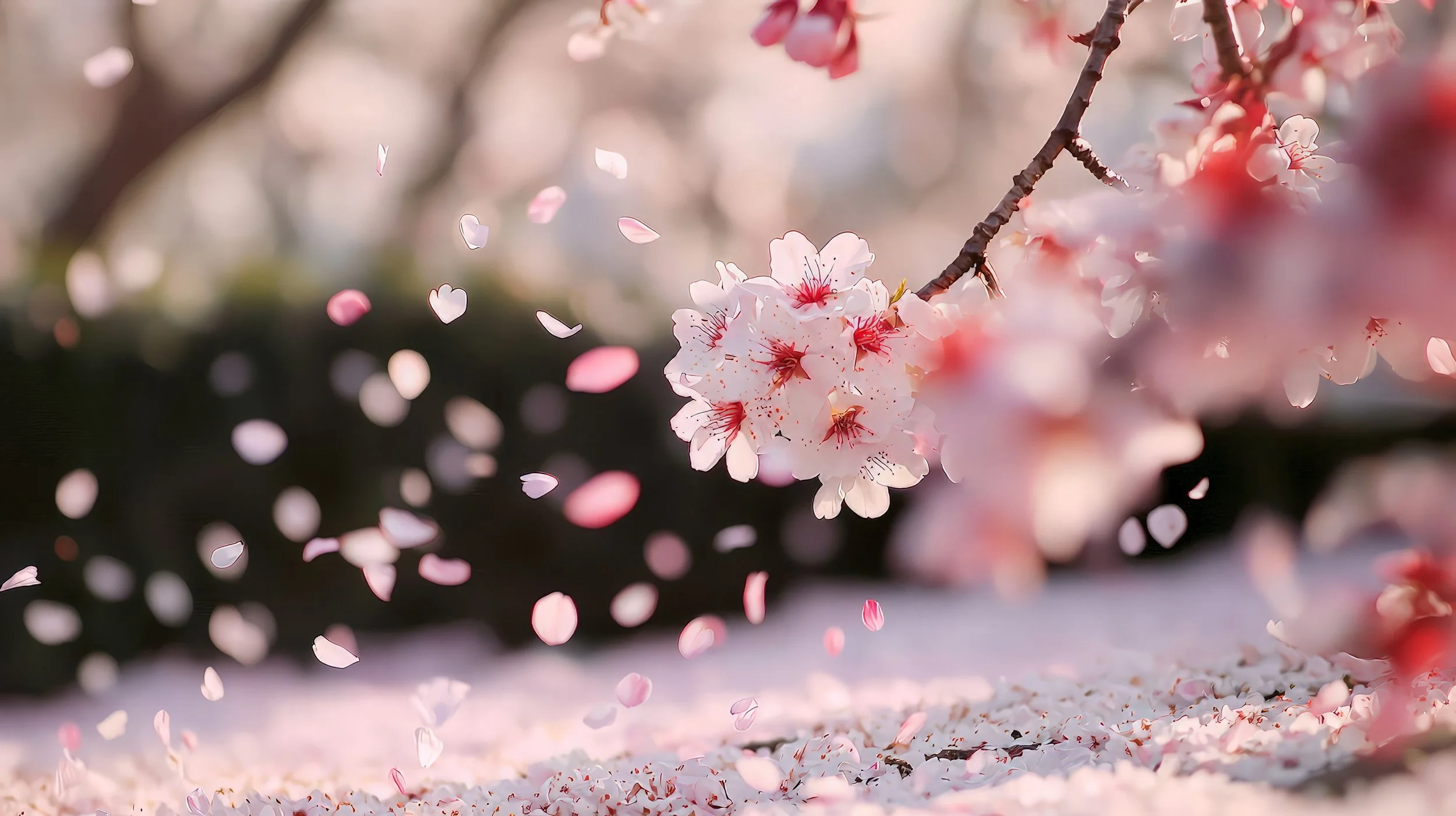 Cherry petals falling all around
